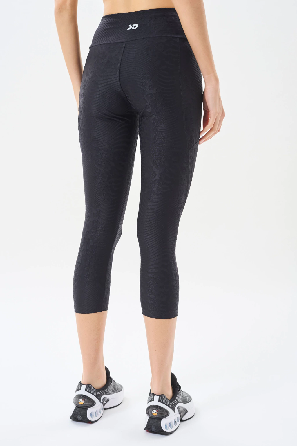 Capri tiro alto. Cintura alta con elástico. Calidad Lycra Sport®. Ajuste estándar, mantiene la comodidad durante tus entrenamientos. Bolsillo lateral para el guardado de tus pertenencias. Tejido jaquard texturizado, completa tanto tu look de entrenamiento, como tu actividad athleisure preferida.